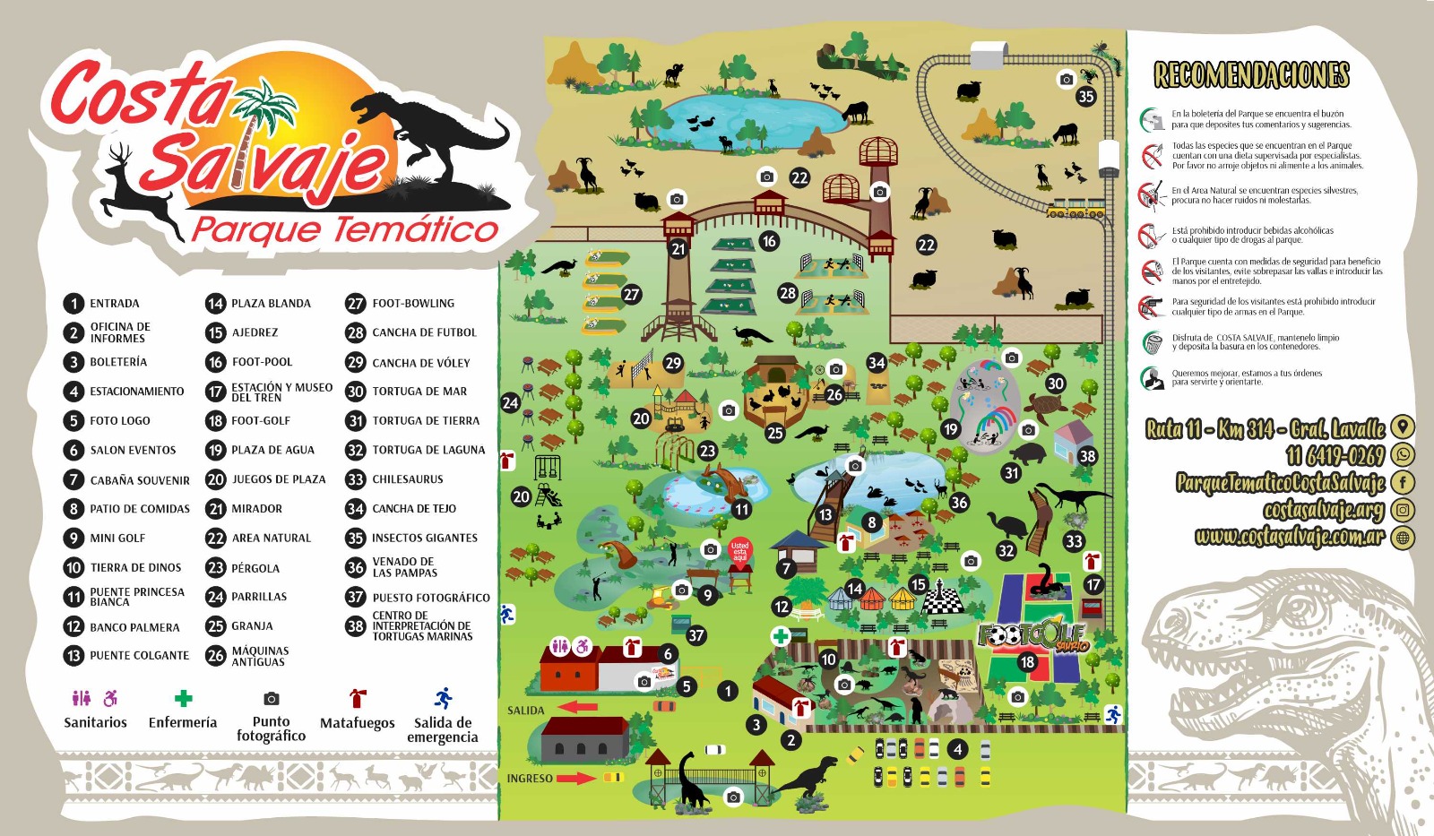 El parque temático Costa Salvaje, situado en un hermoso entorno, te sorprenderá con una gran variedad de dinosaurios animatrónicos, estáticos y sonoros de tamaño natural. Costa Salvaje cuenta también con diferentes atracciones, juegos, patio de comida y parrillas. Disfruta de un día inolvidable lleno de naturaleza, y diversión para toda la familia.